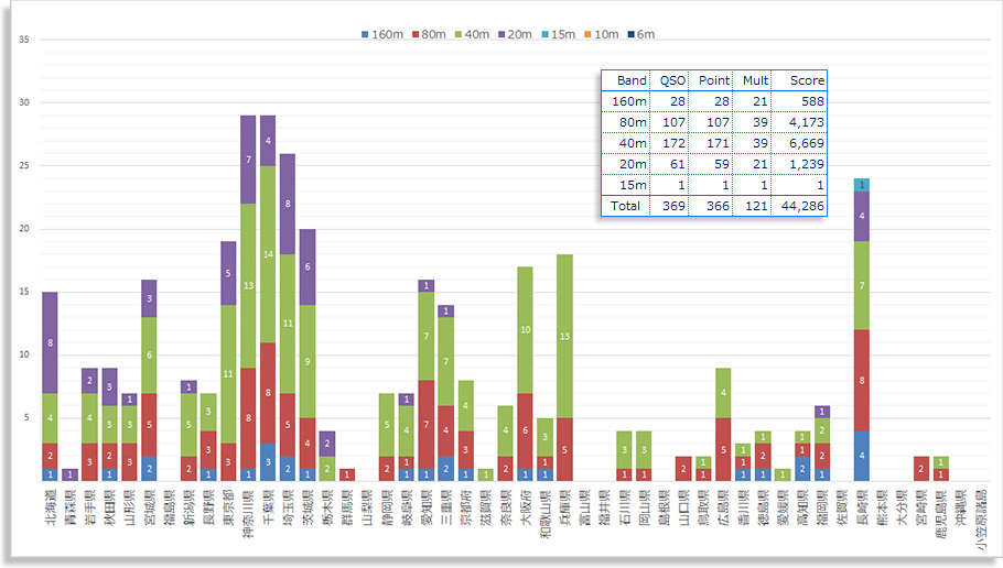 参加部門が、HFマルチ、VUマルチの電信、電信電話、電話の6部門しかないのも県内参加局が少ない要因ではないだろうか。私はこれがずっと気に入らず永らく参加してなかった。地域差もあると思うのでエリア別表彰にしたらいいと常々思っている。