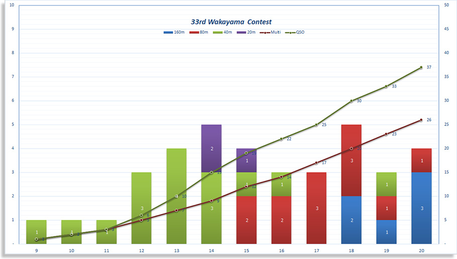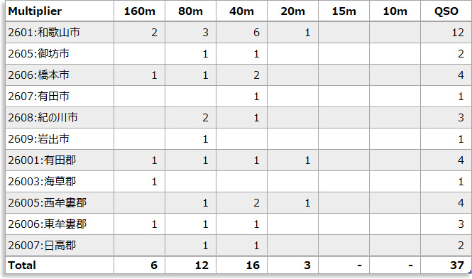 和歌山コンテストも15m(21MHz)以上のハイバンドの国内パスか開くことがなかった。けれども前回参加の時よりスコアは増えた。