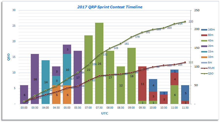 毎年21MHzと7MHzのシングルバンドで参加している。今年もそのつもりだったけれども開始直後からなんも聞こえない状態が20分くらい続いてしまったので今年はオールバンドで参加することを決意して14MHzから始めることにした。その後21MHzが聞こえ始めて28MHzまで開いた。50MHzがまったく開かなかったのが残念でならない。運用状況は、各チャートが示す通りです。毎年電信電話部門しかなかったことに後で気付くけれどもあまり大差がないようだ。