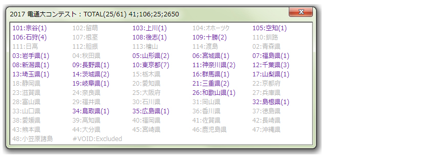 当コンテストのコンテストナンバーには免許の資格情報が付加されそれによってポイントが違う。ほとんどの局がHで第一級アマチュア無線技士以上の局ばかり。無線工学がさっぱり理解不能な私からするとみなさんすごすぎます。