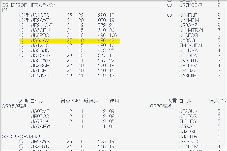 弊局JG6JAVが参加した標記のコンテストの結果は以下の通り。