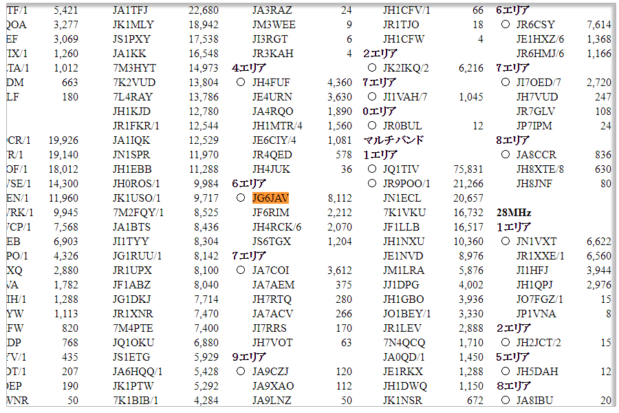 2017年5月3日に開催されたJARL東京都支部主催第39回東京コンテストの結果が発表された。弊局JG6JAVは電信21MHz6エリアで4局中1位でした。交信いただきました各局ありがとうございます。