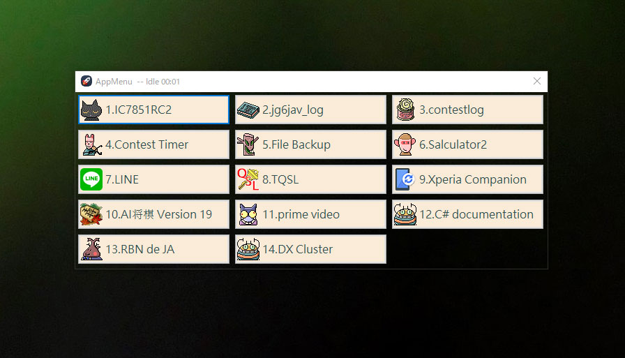 たぶんこんなソフトウエアは、フリーウエアでもありそうだけれども頑張ってC#で作ってみた。よく使うアプリケーションの起動ボタンをメニュー型式にまとめて必要な時にパッと開いてクリックだけでサッと起動できるというものだ。それだけの機能しかない。要するにアプリケーションランチャーである。
