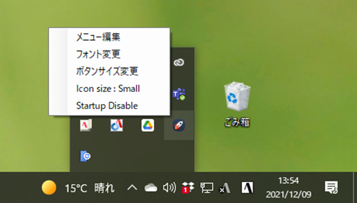 タスクバーのトレイアイコンのロケットアイコンを右クリックすると以下の項目についてコンテキストメニューが表示されて設定変更できるようになります。