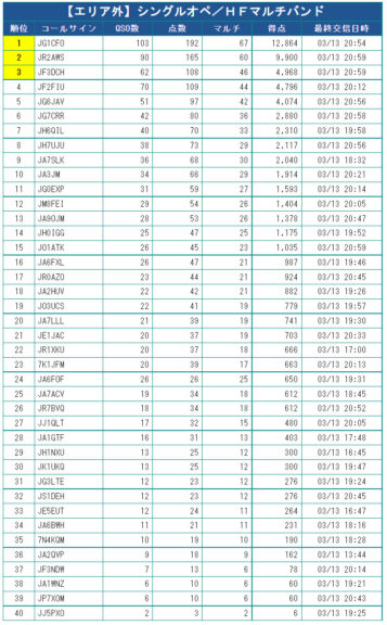 2022年3月13日(日)に参加していた第3回オールJA4コンテストの結果が発表された。弊局JG6JAVは、エリア外シングルオペHFマルチバンド部門に於いて全40局中5位だった。