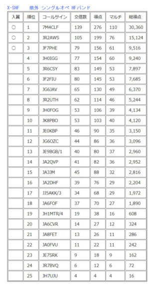 2022年1月10日(月)に参加していた第40回オール埼玉コンテストの結果が発表された。弊局JG6JAVは、県外シングルオペHFバンド部門に於いて全25局中7位だった。
