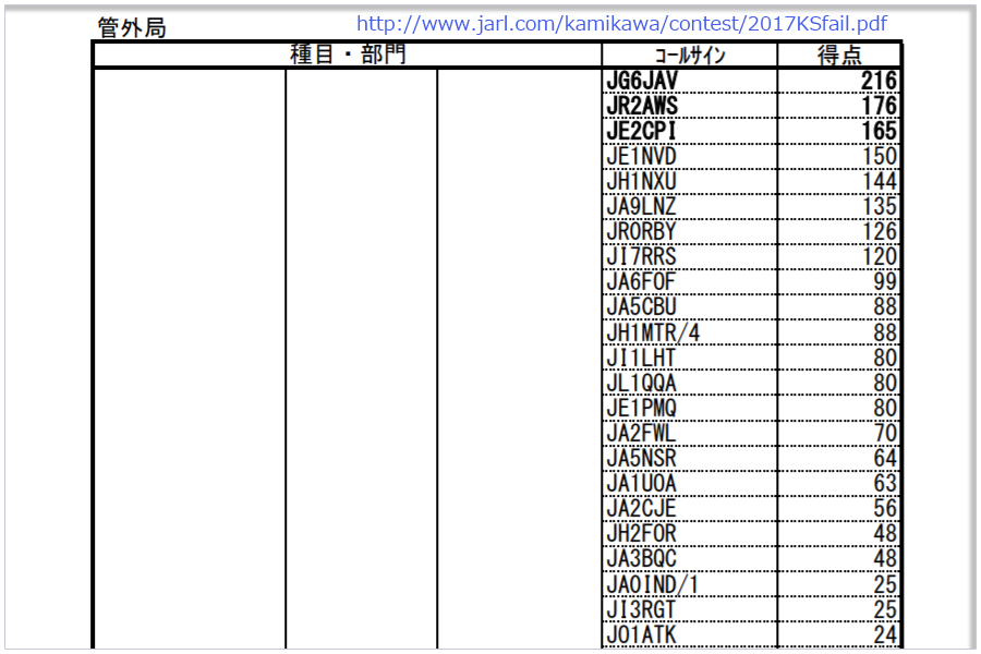 今年から実施された8月11日の山の日に開催された第1回上川宗谷支部コンテストの結果が発表された。弊局JG6JAVは、電信HF部門で51局中1位でした。交信していただきました上川宗谷支部管内局のみなさんありがとうございます。