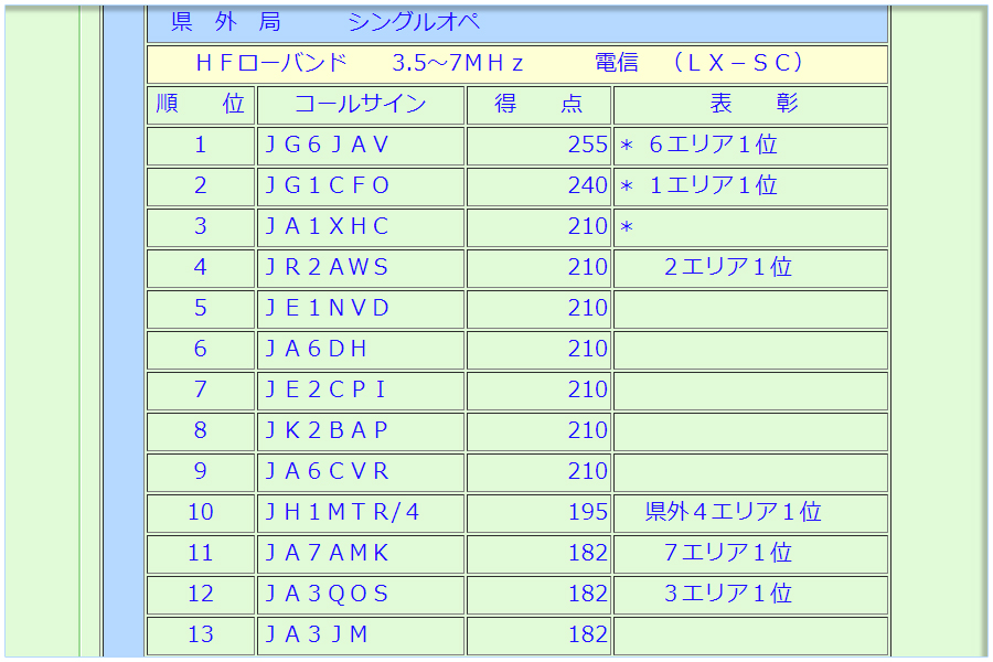 今年9月9日09:00(JST)より26時間もの長時間実施されていた第30回オール岡山コンテストの結果が発表されていた。弊局JG6JAVは、県外局シングルオペHFローバンド電信部門で全119局中1位でした。前年比大幅減のスコアだったのでびっくりです。交信していただきました岡山県各局いつもありがとうございます。