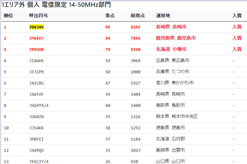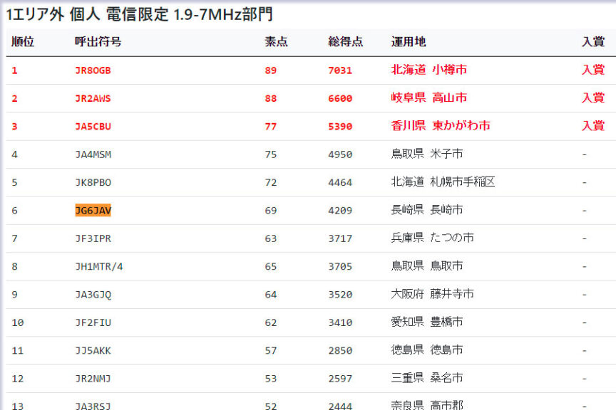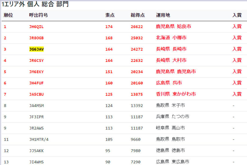 2023 JA1, 青森コンテストの結果 2023.08.312023.09.02 第35回 ALL JA1 コンテスト https://allja1.org/lists #1/23 #1/21 #3/107 第17回オール青森コンテスト https://jarl-aomori.sakura.ne.jp/contest/ #1/45