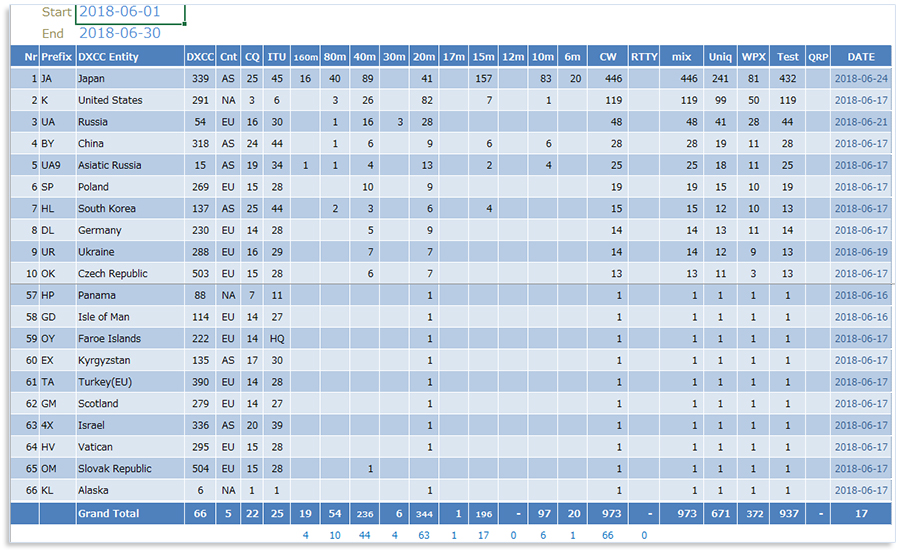 弊局JG6JAVの6月の運用状況は、チャートの通り。13種のコンテストに参加を予定していたが2日に無線機のトラブルで内6種に参加継続不能となった。無線機は、直ちに奈良県のアイコムリペアセンターに送ったけれども現象再現できないまま戻って来た。結局運送中の振動で何かが正しく動作するようになったらしい。その後問題なく動作している。