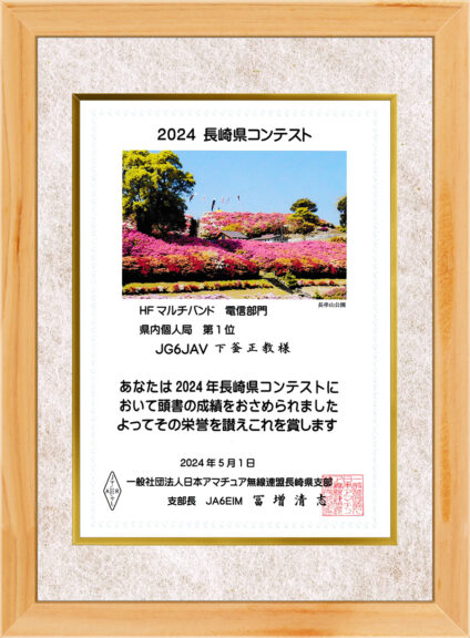 2024年長崎県コンテストの賞状を拝領いたしました。数あるコンテストの中でも結果発表から賞状発行まで一番早いのではないでしょうか。びっくりです。