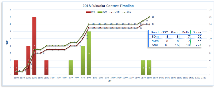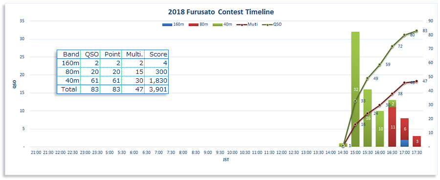 そもそも墓参りの習慣などない罰当たり野郎だが9月22日土曜日21:00から秋分の日23日日曜日18:00まで以下の3種類のコンテストに参加していた。愛・地球博記念コンテストと福岡コンテストが完全に時間帯が被ってしまって福岡コンテストがお気の毒な状態になっていた。ふるさとコンテストは初参加のコンテストである。それぞれの運用状況は以下のチャートの通り。