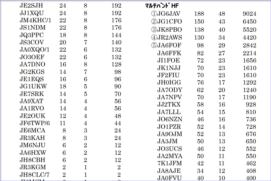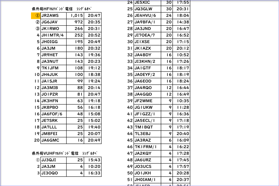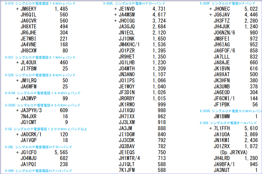 管外 電信1.9-7MHz #4/23 14-50MHz #2/8 総合#3/101