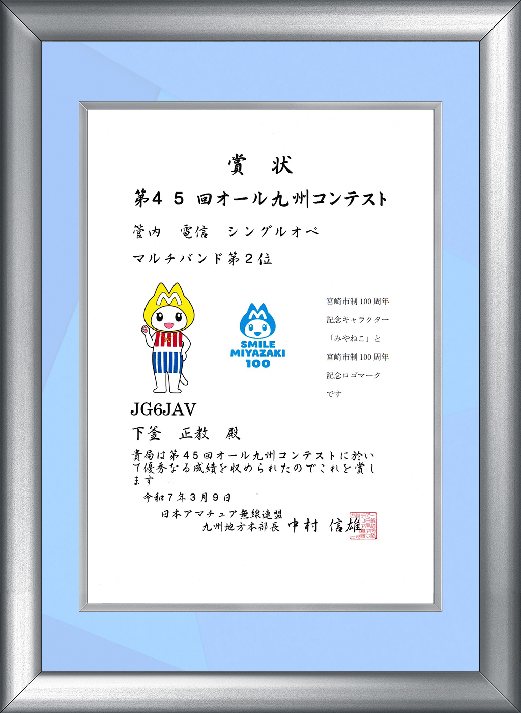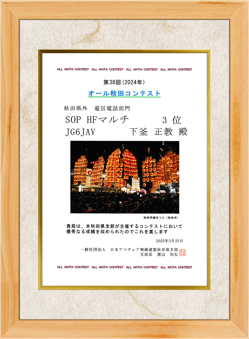 2024 秋田、愛・地球博記念、オール九州コンテストの賞状 2025.04.162025.04.17 第38回オール秋田コンテスト 第19回愛・地球博記念コンテスト 第45回オール九州コンテスト 各コンテストで交信下さいました各局いつもありがとうございます。