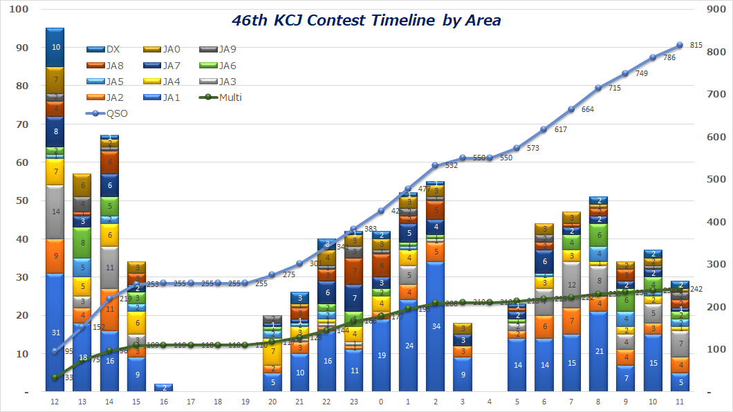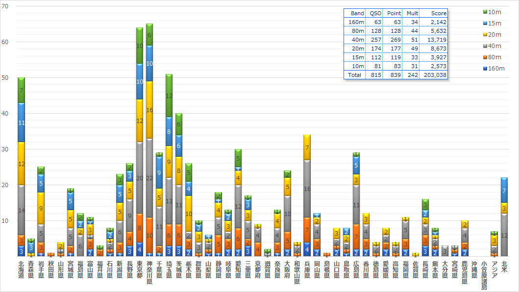 ハイバンドの国内伝播状況良好でも、JA6(九州)、JA5(四国)、JA4(中国)とはあまり交信数が伸びなかった。