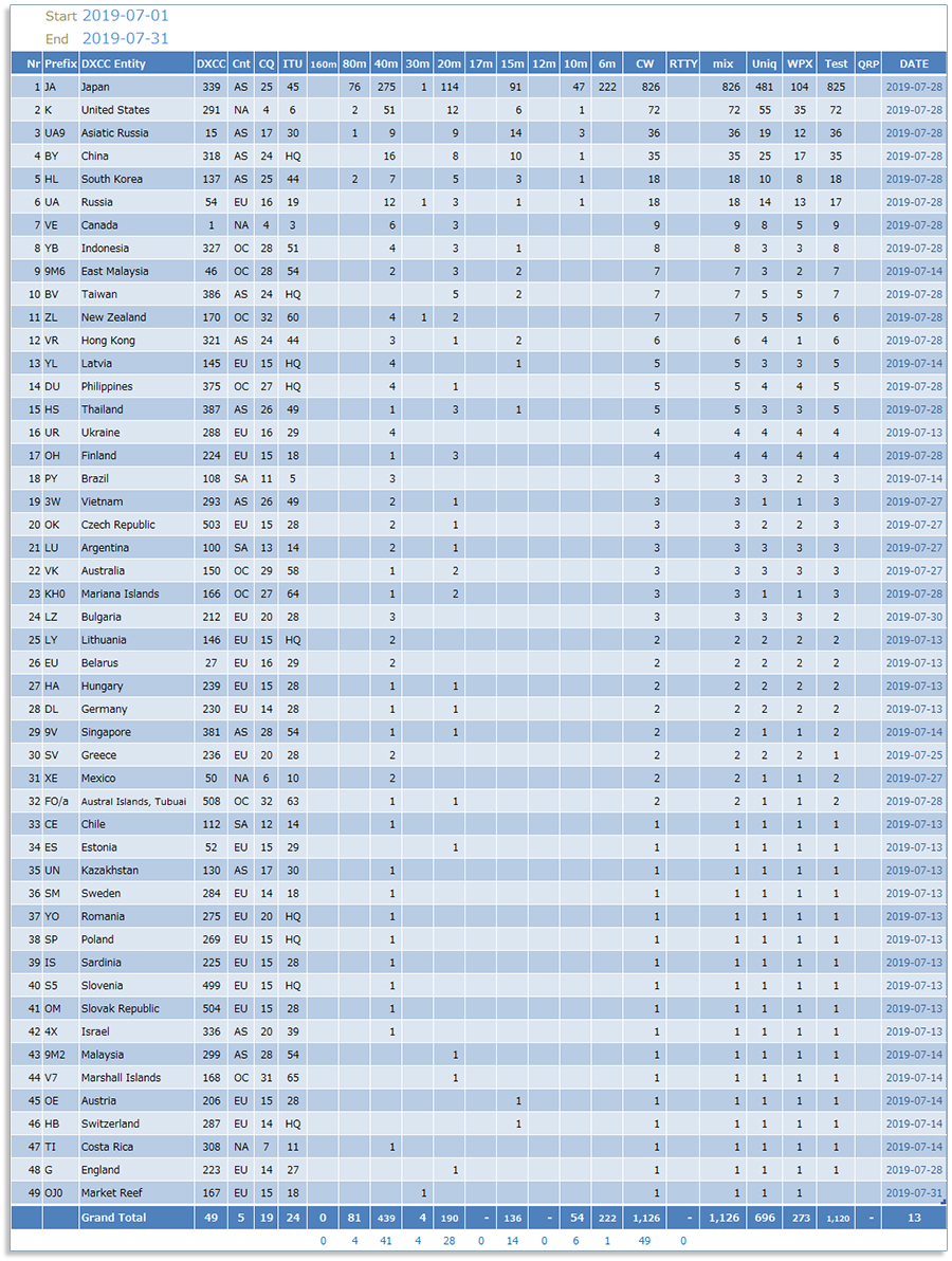 今年は梅雨入りが遅かった分梅雨明けも遅くなってしまい7月下旬なってようやく梅雨明けとなった。その影響であまり暑くなかったように思う。我が家の古い冷房専用エアコンの動作がかなり怪しくなったので思い切って近所の電器屋さんに最新式省エネタイプのエアコンを注文し取り替えた。これで暑い日の室内運用も快適になりそうだ。それにしても最近のエアコンは、室内機の出っ張りが大きいように思う。さて、7月の弊局JG6JAVの運用状況だが参加を予定したコンテストは、全国高等学校アマチュア無線コンテストとALL JA5コンテストを除いた9種類のコンテストに参加した。どのコンテストも前年比減が多く低いスコアで終わっていた。詳細はそれぞれのコンテストの運用状況のページを参照願いたい。