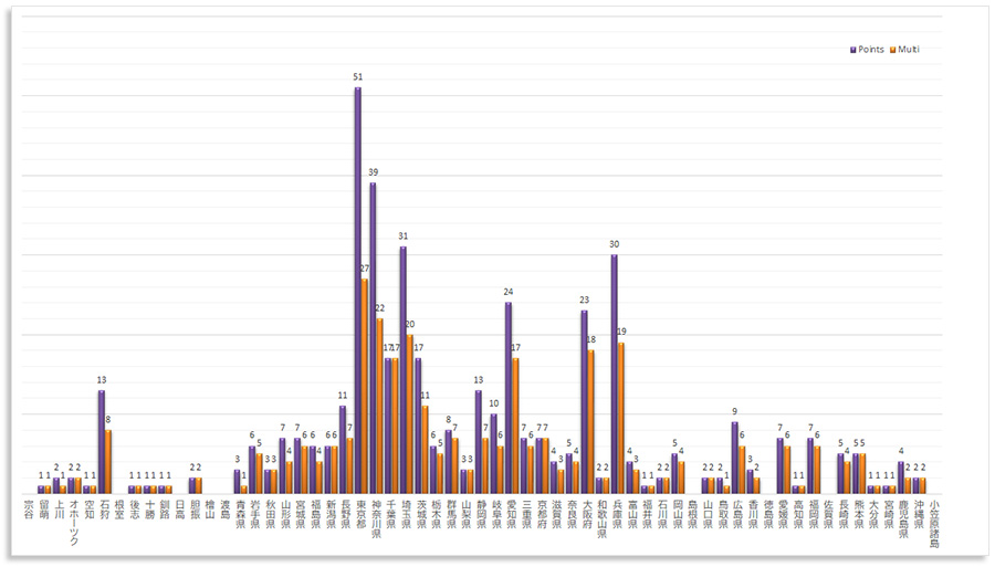 マルチプライヤー別得点とマルチプライヤー数