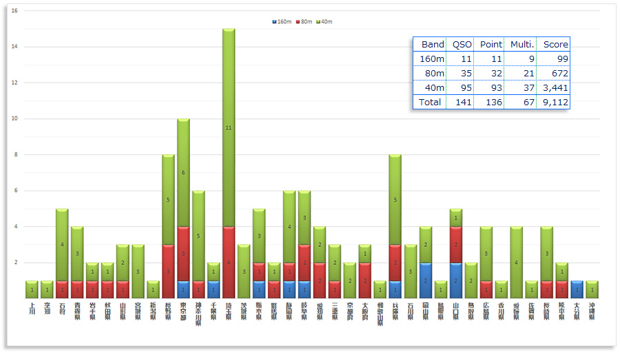 双方のコンテストとも14MHz以上のハイバンドでの交信はまったくできなかった。QRPコンテストこちらからの応答に気付いていただけない局数局。同じように当方に対してもそのように感じていた局もいたかもしれない。空耳ギリギリ交信が多いのがQRPコンテストだ。