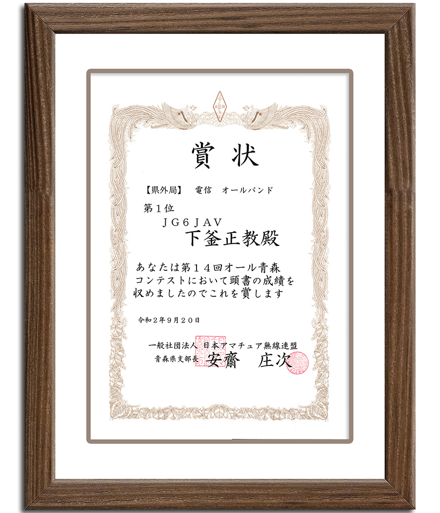 8月に結果が発表されていた第14回オール青森コンテストの賞状を拝領いたしました。交信していただきました青森県各局ありがとうございます。