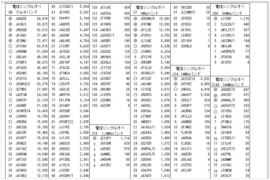 2020年9月に参加していた第50回XPO記念コンテストの結果が発表されていた。弊局JG6JAVは、電信シングルオペマルチバンド部門に於いて全138局中8位だった。上位入賞局との差がすごすぎる。